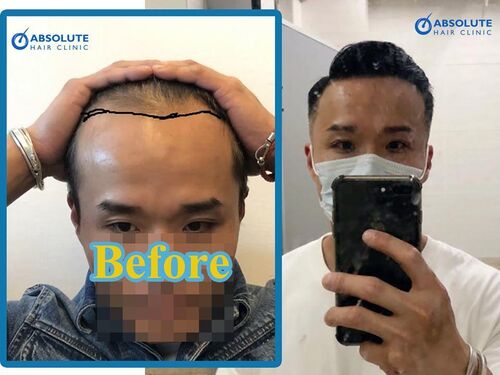 ビフォーアフターです。FUE2500株、1年後の結果です。 自然で、高密度で、キレイな生え際です。 ドナー部の後頭部の画像がちょっとないのですが、側頭部をかなり短く刈り込んでいますね。後頭部も同様にかなり短く刈り上げていると思います。 最新鋭…